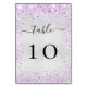 Silver purple violet glitter sparkles glamorous table number