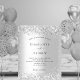 A faux silver metallic looking background. Decorated with faux glitter, sparkles. Personalize and add your names and party details.