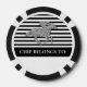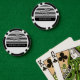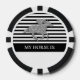 A black poker chip features a silver racehorse on black and white stripes and a place for your guests to write in the horse they are betting will win the Derby on the front and on the back their names. MATCHING items in our collection.