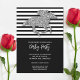 Derby themed party invitations featuring a faux silver glitter racehorse on black and white stripes at the top and black area on the bottom for your party information. MATCHING items in our collection.