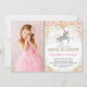 Silver Rainbow Unicorn Pink Floral Birthday Invitation