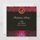 SILVER RED,BLACK DAMASK GRADUATION MONOGRAM ANNOUNCEMENT