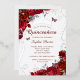 Silver Red Floral Butterfly Elegant Quinceanera Foil Invitation
