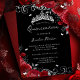 Silver Red Rose Floral Swirl Quinceanera Foil Invitation