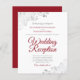 These affordable, budget friendly wedding reception invitations are the perfect choice for class, style, and beauty on a budget. Designed for guests who are invited to the reception but not the ceremony, they feature a classic white background with ornate silver faux foil lace frills in the corners. The typography includes fancy crimson red script lettering for a style that is at once simple and elegant. Wonderful way to invite your friends and family to share in your joy on your special day without breaking the bank.