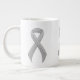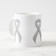 Silver ribbon with the words "support awareness" on it.. The silver ribbon is associated with Elderly Abuse Awareness in May, Dyslexia Awareness in October, Disabled Children Awareness, and Encephalitis Awareness.