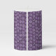 Candle with a pattern of silvery rings and purple dots on a darker purple background.