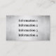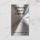 A silver metal look circular ripples or waves pattern surface is a unique and professional looking business card. Easily customize with your own information. Use the shown black font or easily change the font style and/or color for complete customization. A great card for industrial, construction, building, automotive, and other skilled trade occupations, as well as other artistic design professionals. More information can be put on the back as well onto the metal look background. Printed on paper, not actual metal. A strong business card that stands out from the rest.