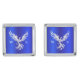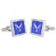 Silver Rising Phoenix Monogram Initial Cobalt Blue Cufflinks
