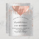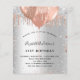 For an elegant 21st (or any age) birthday. A faux silver looking background. Decorated with rose gold and faux silver drips, paint dripping look and balloons. Personalize and add a name, age 21 and party details. The name is written with a hand lettered style script