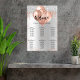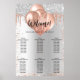 A seating chart for a girly birthday party. A faux silver looking background decorated with rose gold and faux silverglitter drips, paint dripping look, balloons. Personalize and add the guests' names.