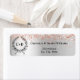A faux silver looking background. Decorated with a laurel wreath and rose gold confetti, sparkles. Personalize and add your names, first names initials and return address.