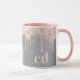 An elegant, girly and glam mug. Rose gold and pink faux glitter drip, paint dripping look. Chic faux silver metallic looking background. Personalize and add your monogram initials, letters x3. Rose gold colored letters.