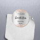A Save the Date magnet for your wedding. A faux silver looking background, black text. Decorated with rose gold confetti.