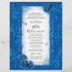 With some rewording, these unique floral quinceañera invitations can also be ideal for fairytale weddings, a Cinderella sweet 16 birthday party, once upon a time princess baby shower for a girl, bridal shower, as well as other magical parties. Further customizing this whimsical design can reveal additional creative options as well. Feel free to edit the modern fonts and calligraphy script ("My Quinceanera") to a typography that best suits your fancy. Additionally, reposition the artwork and personalized text to include a glam mis quince anos photo / picture. With the elegant pattern of roses on the backside, these luxurious DIY scroll invitations are beautiful when rolled up. Category: handmade scroll wedding invitations; unique scroll wedding invitations with butterflies; and cool RSVP DIY quinceanera scroll invitations. Silver and royal blue quince theme party colors: medium royal blue navy, dark blue, sapphire, light grey, gray, and silver.