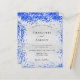 A modern, elegant and minimalist wedding invitation. Faux silver metallic looking background decorated with royal blue faux glitter dust. Personalize and add your names and wedding details. Black colored letters.