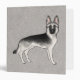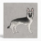 Destei's original cartoon illustration of a silver sable / black and silver color German Shepherd breed dog. The background color is greige with a decorative texture. The texture can be removed and the background color can be changed to any other color, if so wished. There is also a personalizable text area on the spine together with a black paw print silhouette.