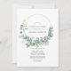 Forest eucalyptus greenery Celebration of Life invitation with gold geometric frame and silver sage watercolor wash reverse customizable to your event specifics.