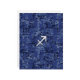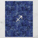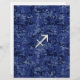 A chrome like Sagittarius zodiac symbol on a vibrant navy blue digital camouflage design texture print background. A modern urban racy design for a great custom birthday gift idea.