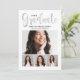 Celebrate your grad with this modern graduation party invitation featuring a silver script “Graduate” headline and a 4-photo collage layout. Personalize the name, school, year, and party details in minutes. The back design coordinates with a silver “Lets Celebrate” script and clean RSVP wording.