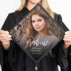 Modern graduation cap topper featuring a custom photo. The word "graduate" appears in silver faux foil script, with the graduate's name and year of graduation below in white sans serif font. Easily replace the sample image with your own graduate's photo. A black gradient screen helps ensure the text pops. Ideal for high school or college graduation.