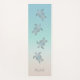 This beach yoga mat features elegant silver turtles on a turquoise and beige/sand background. Customize it with your name in an elegant feminine font.