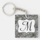 Silver Sequin Dazzle Glitz Glam Disco Ball Glamour Monogram Initial Personalized Key Chain