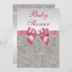 Silver Sequins and Bow Girls Pink Baby Shower Invitation