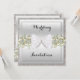 Plain white envelopes are included with paper invitations and will come to fit the invitation size you select. If you don’t need the envelopes, you may choose to not receive them by selecting the dropdown below "Envelopes" and choosing "None." If you’d like to have a design on your envelopes, you can browse all of these available envelopes to find the design that complements your Silver Sequins Floral Gems Glitter Bow Wedding Invitation.