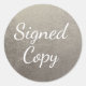 Create your own "signed copy" stickers against a printed silver metallic foil photo effect. Customize the font style, color and size. Try black text rather than the white.