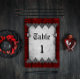 Silver Skulls Blood Red Silk Gothic Wedding Table Number
