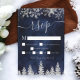 Time to celebrate your winter wonderland wedding theme with this luxury silver glitter snowflakes sparkles and silver glitter pine tree forest on an elegant festive navy blue watercolor background, featuring a modern cool script font typography. Perfect rsvp card for your winter wonderland wedding.