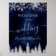 Welcome guests to your winter wedding with this elegant sign featuring faux silver glitter shimmering snowflakes and a forest of frosted pine trees. Set against a deep navy blue background, the design exudes a magical winter wonderland ambiance. Perfect for a Christmas or winter wedding, this sign sets the tone for a festive and romantic celebration.