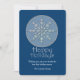 Stylish flat style Christmas greeting card done in a federal blue background graphics of a silver tone snowflake set in a silver glittery circle. Silver tone graphic text reads Happy Holidays. White custom text, on the bottom, is ready to personalize to suit your company needs.