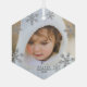 This personalized photo ornament with a scatter of elegant faux silver glitter snowflakes and your optional custom text in dark gray is a cute way to display treasured memories. These custom glass Christmas ornaments in a hexagon shape allow light to shine through so the minimalist 7 silver snowflake design and your picture will peek through on the back as they hang on your Christmas tree. Easy to personalize, just add your photo via the provided template and then add your text in dark gray or delete and clear to remove the placeholder text if you prefer your ornaments without wording. So add your photo behind the elegant faux silver glitter snowflake design and create your own customized Christmas ornaments, maybe one for everyone in the family for a matching set. Fun for kids, adults, family and friends, these personalized ornaments featuring your photo and silver snowflakes make great keepsakes that you will treasure for years to come.