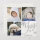 Silver Snowflake Joy Script 3 Photo Collage Holiday Card