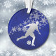 Silver Snowflake Soccer Player on Blue Ornament