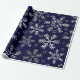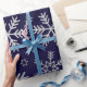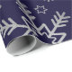 Silver Snowflakes and Stars on Navy Blue Winter Wrapping Paper