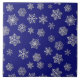 Silver, metallic-look snowflakes against a dark midnight blue background