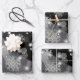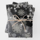 Silver Snowflakes Sparkles And Lights On Black Wrapping Paper Sheets