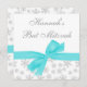 Silver Snowflakes Teal Bow Bat Mitzvah Invitation