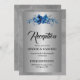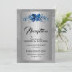 This invitation exudes sophistication with its metallic silver accents gracefully intertwined with a stunning blue floral design.