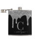 Silver Sparkle Glitter Drips on Black Monogram Flask