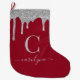 Silver Sparkle Glitter Drips on Red Monogram Large Christmas Stocking