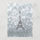 Silver Sparkle Glitter Eiffel Tower Save the Date Announcement Postcard