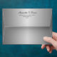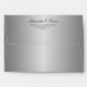 A mesmerizing blend of metallic silver and delicate blue florals adorn this enchanting wedding invitation envelope, exuding an air of elegance and sophistication.
