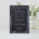 A sumptuous black watercolor night sky amidst sparkling silver stars cascading onto classic English script calligraphy with a splattering of shimmering silver ink spots.