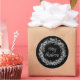 Twinkling silver stars, circles and dots surround the words "Merry Christmas" on black round stickers are perfect for your holiday gift giving and more. MATCHING items in our store.