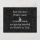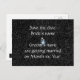 Painting of silver stars on black, with a flash added, and placeholders for wedding info, printed on custom Save the date Postcards.