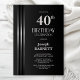 Silver Striped Black Grey 40th Birthday Party Invitation